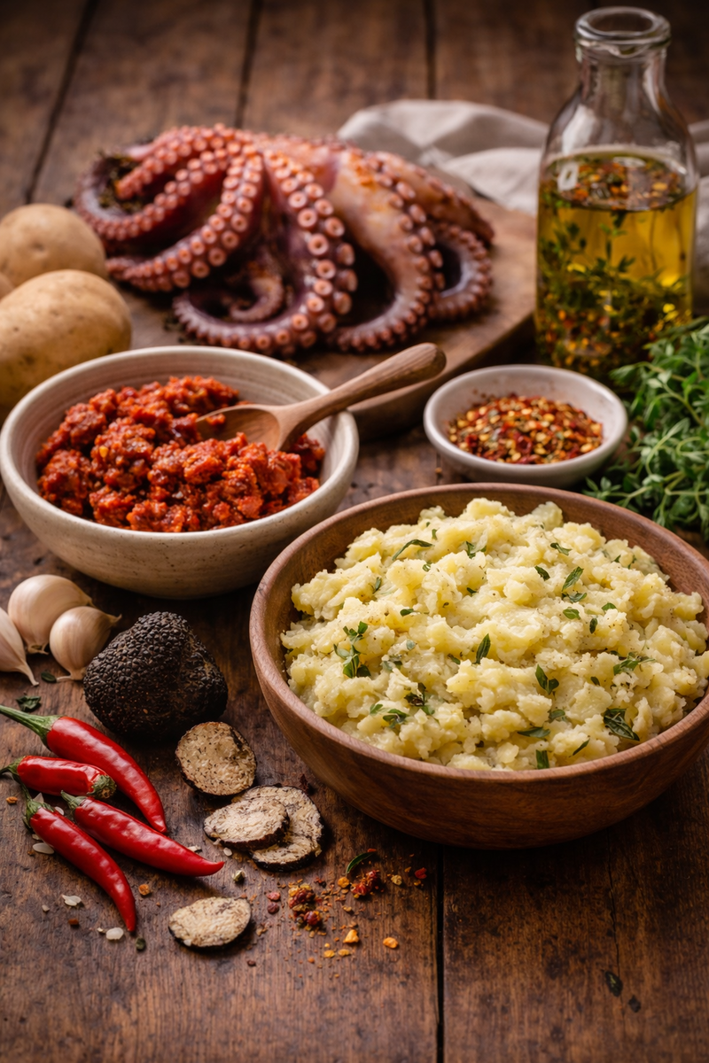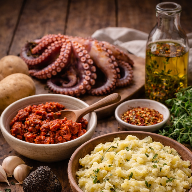 Polpo alla calabresePoulpe sauté à la Nduja piquante et écrasé de pommes de terre aux saveurs méditerranéennes | 38.00 |