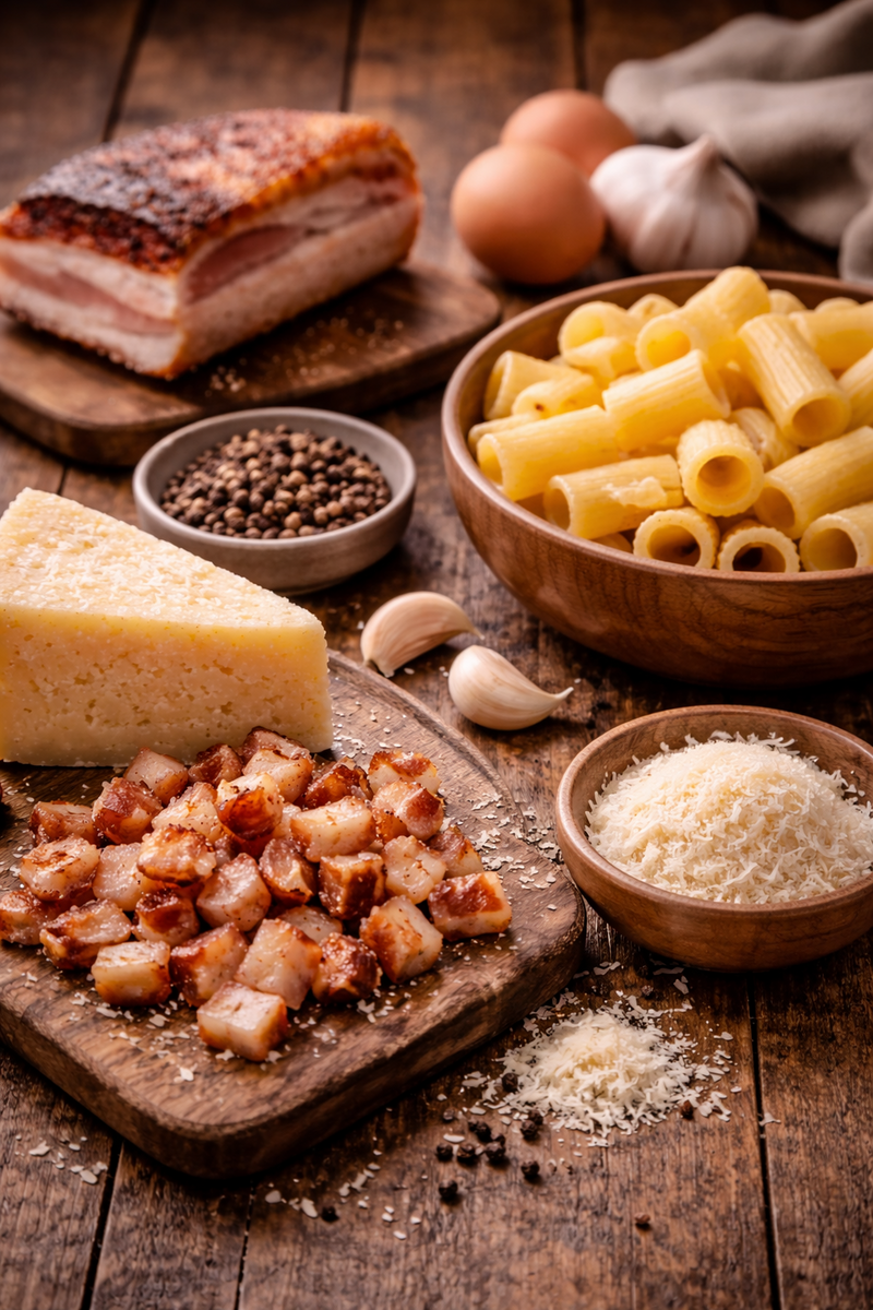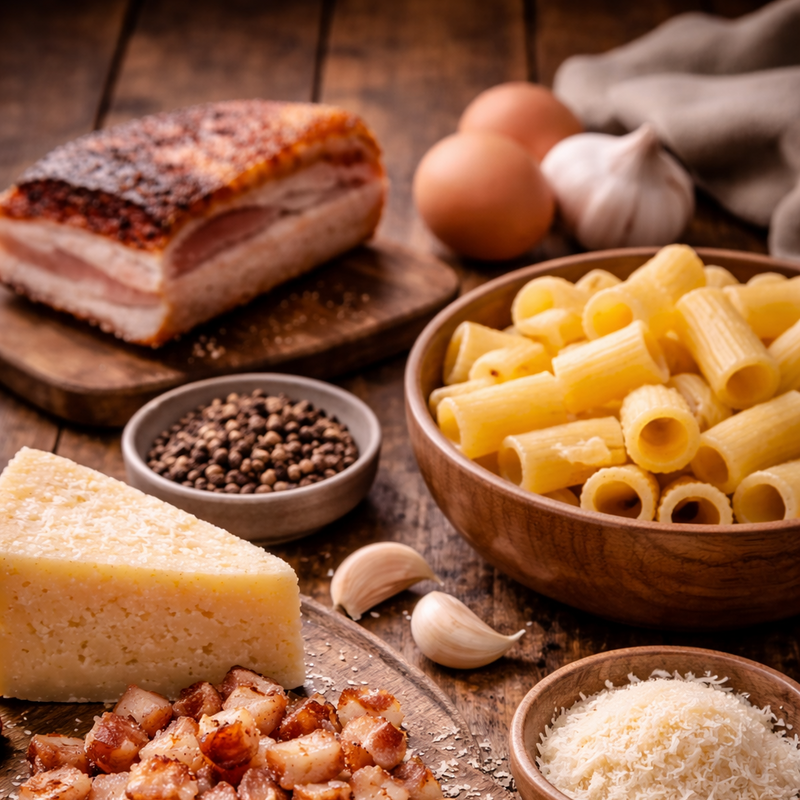 Rigatoni alla carbonara preparati secondo la tradizione romanaRigatoni à la carbonara cuisinés dans la plus pure tradition romaine, garnis de guanciale croustillant et de pecorino romano | 26.00 |